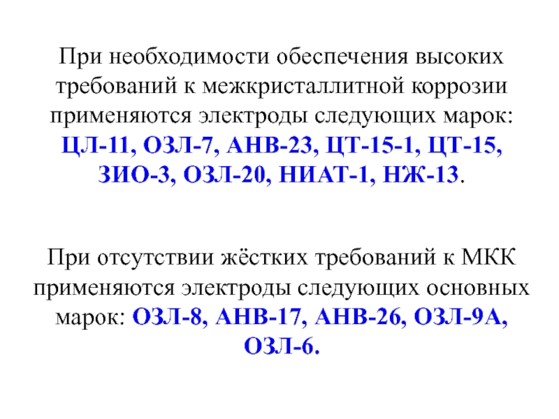 Слайд 48При необходимости обеспечения высоких требований к межкристаллитной коррозии применяются электроды следующих