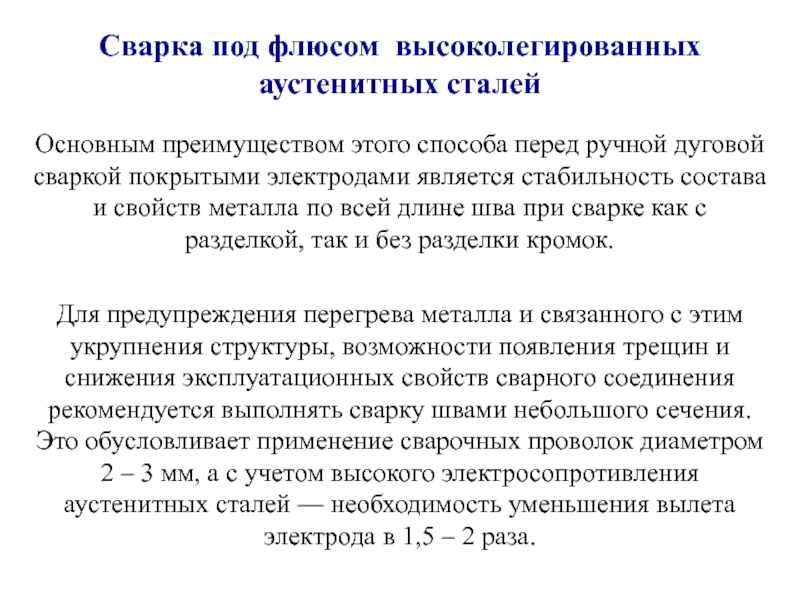 Слайд 56Сварка под флюсом высоколегированных аустенитных сталей