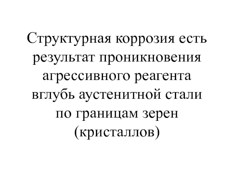 Слайд 27Структурная коррозия есть результат проникновения агрессивного реагента вглубь аустенитной стали по