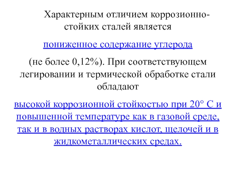 Слайд 5 Характерным отличием коррозионно-стойких сталей является