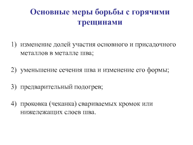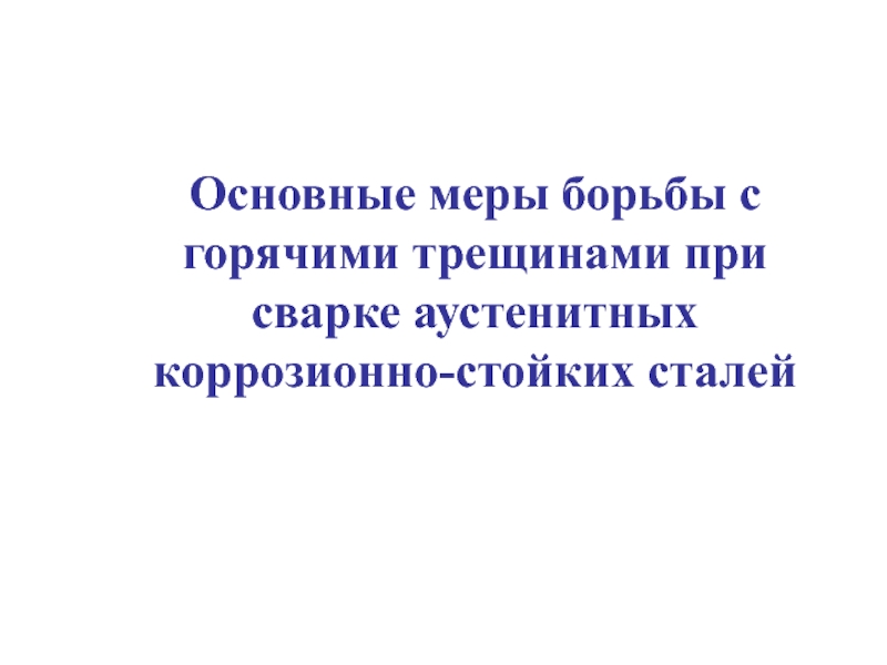 Слайд 18Основные меры борьбы с горячими трещинами при сварке аустенитных коррозионно-стойких сталей