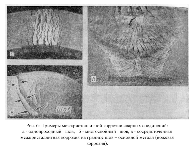 Слайд 28Рис. 6: Примеры межкристаллитной коррозии сварных соединений: