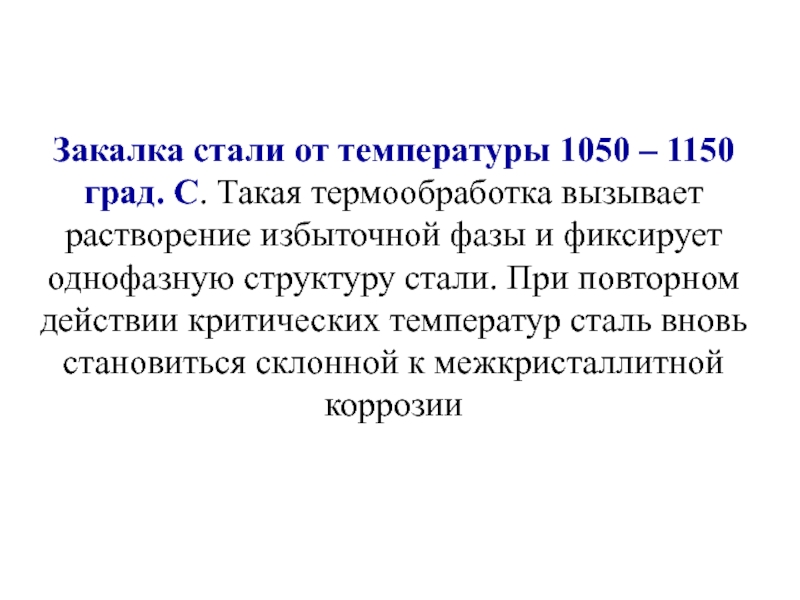Слайд 35Закалка стали от температуры 1050 – 1150 град. С. Такая термообработка
