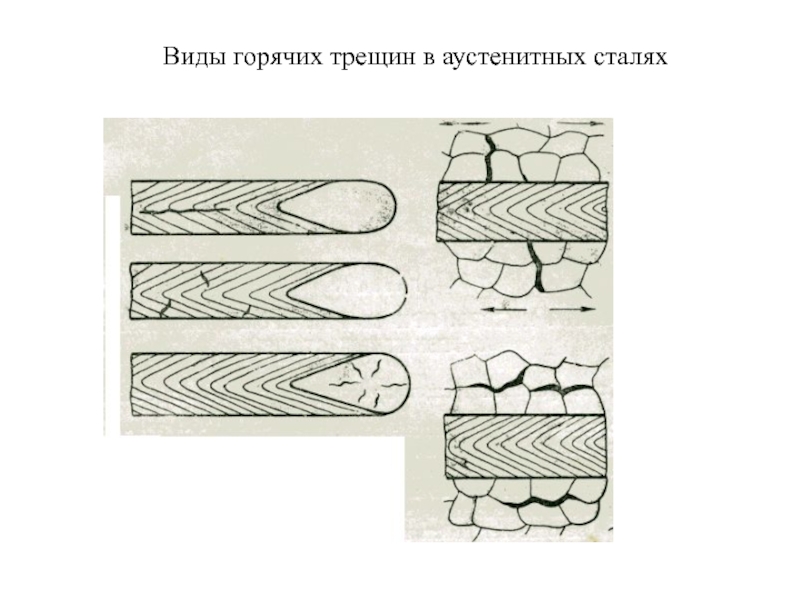 Слайд 13Горячие трещины в высоколегированных аустенитных сталях