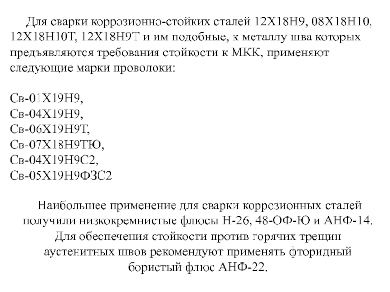 Слайд 57 Для сварки коррозионно-стойких сталей 12Х18Н9, 08Х18Н10, 12Х18Н10Т, 12Х18Н9Т