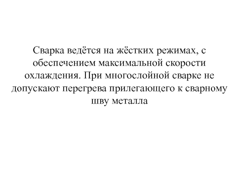 Слайд 36Сварка ведётся на жёстких режимах, с обеспечением максимальной скорости охлаждения. При