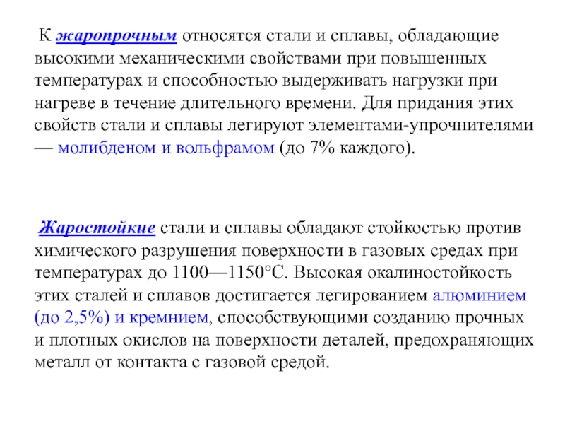 Слайд 6 К жаропрочным относятся стали и сплавы, обладающие высокими механическими свойствами