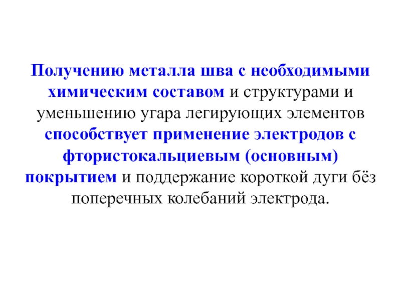 Слайд 47Получению металла шва с необходимыми химическим составом и структурами и уменьшению