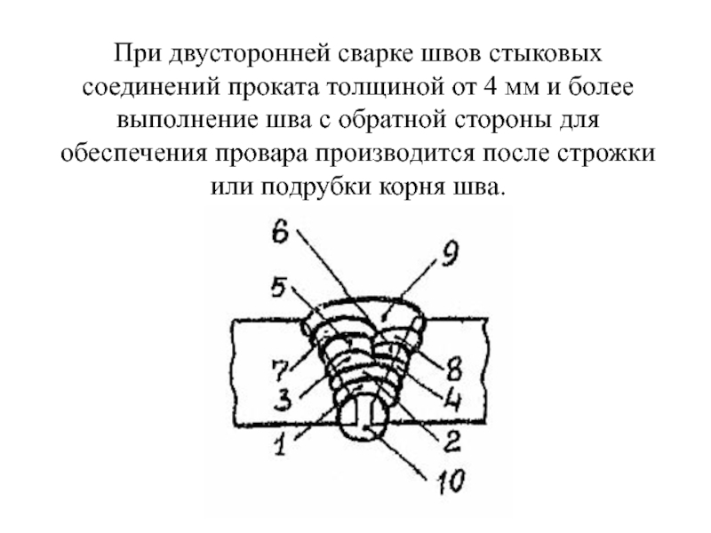 Слайд 53При двусторонней сварке швов стыковых соединений проката толщиной от 4 мм