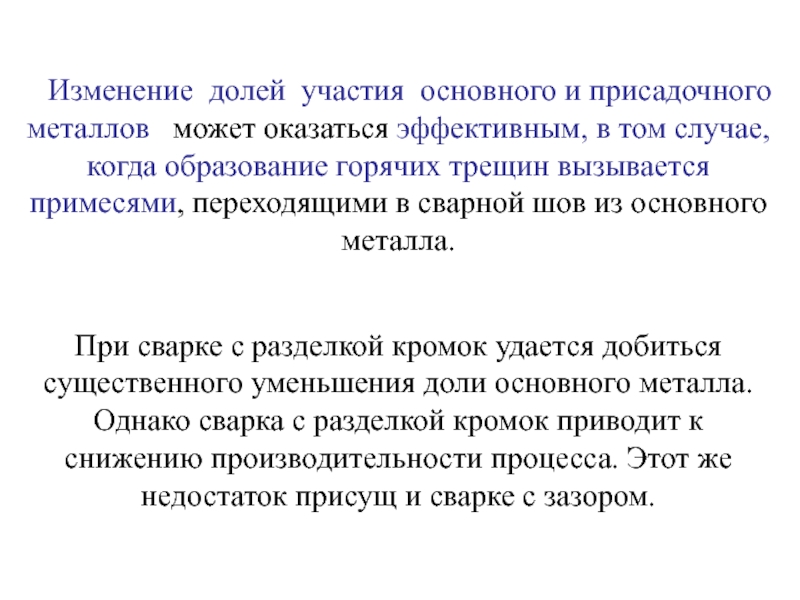 Слайд 20 Изменение долей участия основного и присадочного металлов