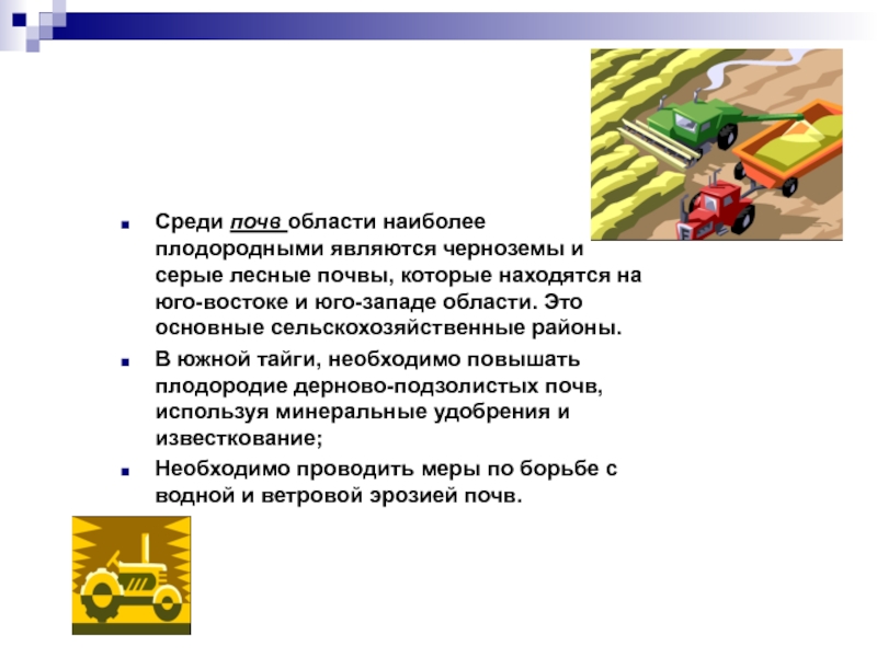 В южной тайги, необходимо повышать плодородие дерново-подзолистых почв, используя минеральные удобрения и известкование;