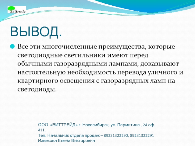 ООО «ВИТТРЕЙД» г. Новосибирск, ул. Пермитина , 24 оф. 411.