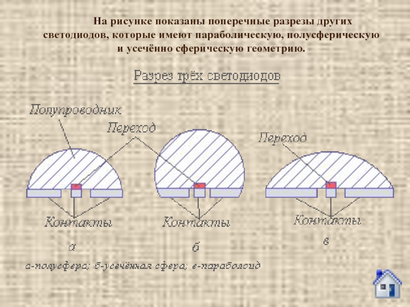 Слайд 10 На рисунке показаны поперечные разрезы других светодиодов,