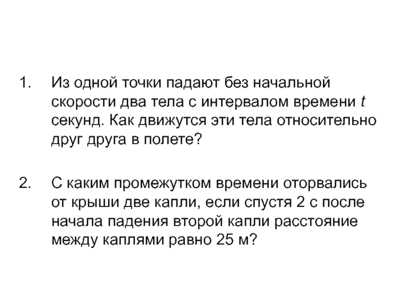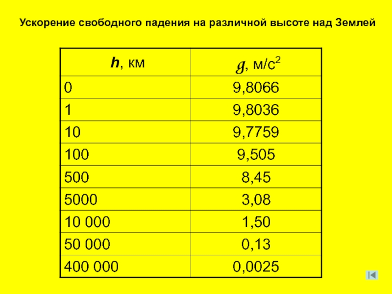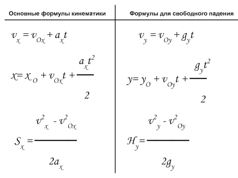 Формулы для свободного падения