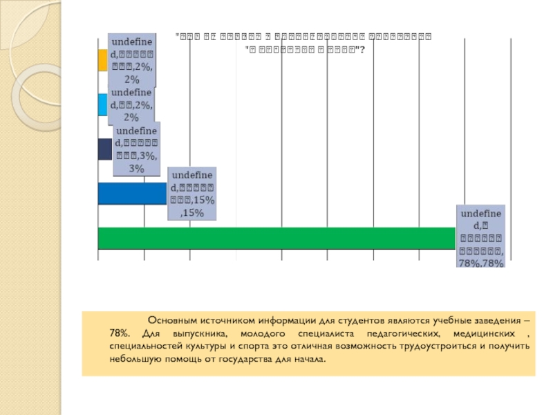 информации для студентов являются учебные заведения – 78%. Для выпускника, молодого специалиста педагогических, медицинских , специальностей культуры и спорта это отличная возможность трудоустроиться и получить небольшую помощь от государства для начала.