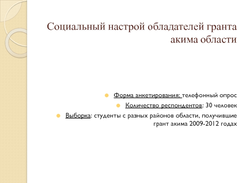 Слайд 28Социальный настрой обладателей гранта акима области