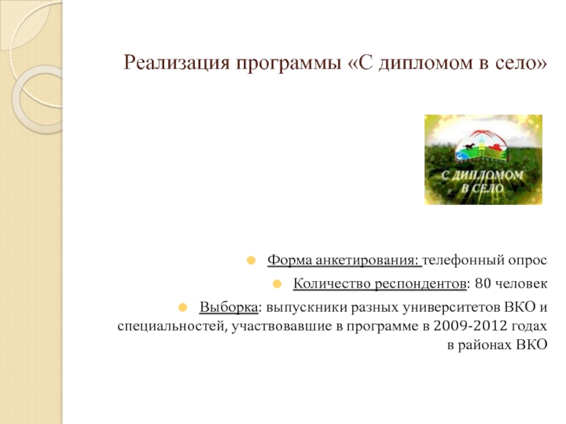 Слайд 19Реализация программы «С дипломом в село»
