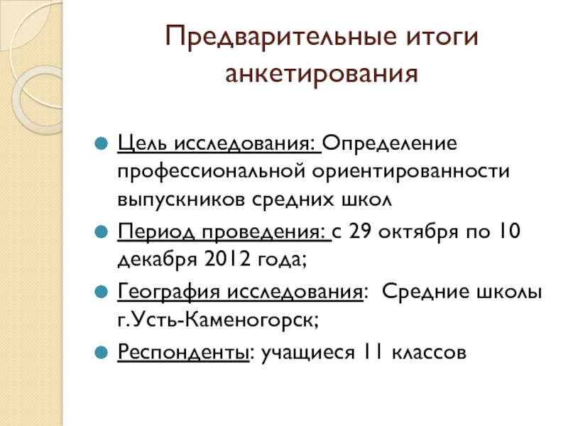 Слайд 5Предварительные итоги анкетирования