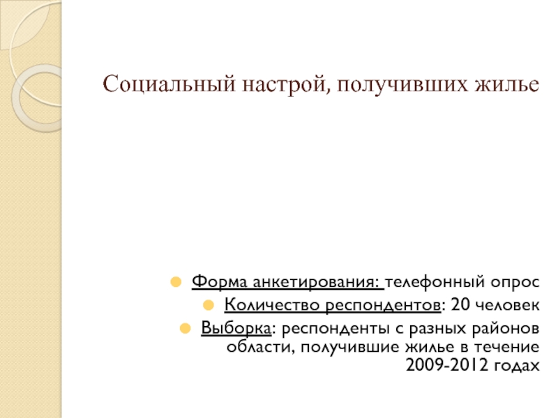 Слайд 30Социальный настрой, получивших жилье