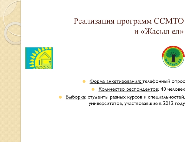 Реализация программ ССМТО и «Жасыл ел»