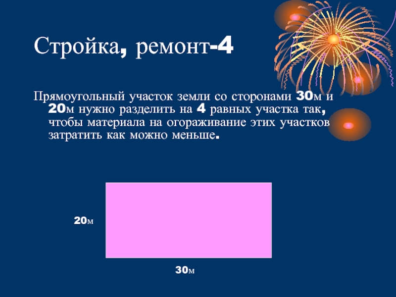 Прямоугольный участок земли со сторонами 30м и 20м нужно разделить