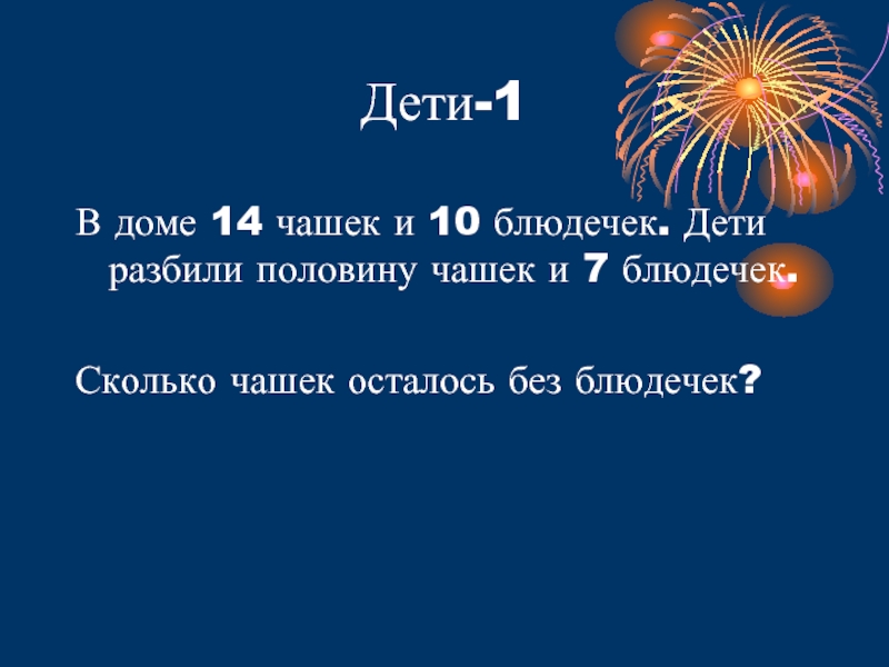 В доме 14 чашек и 10 блюдечек. Дети разбили половину чашек