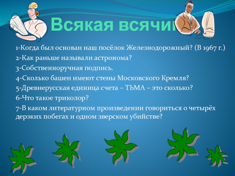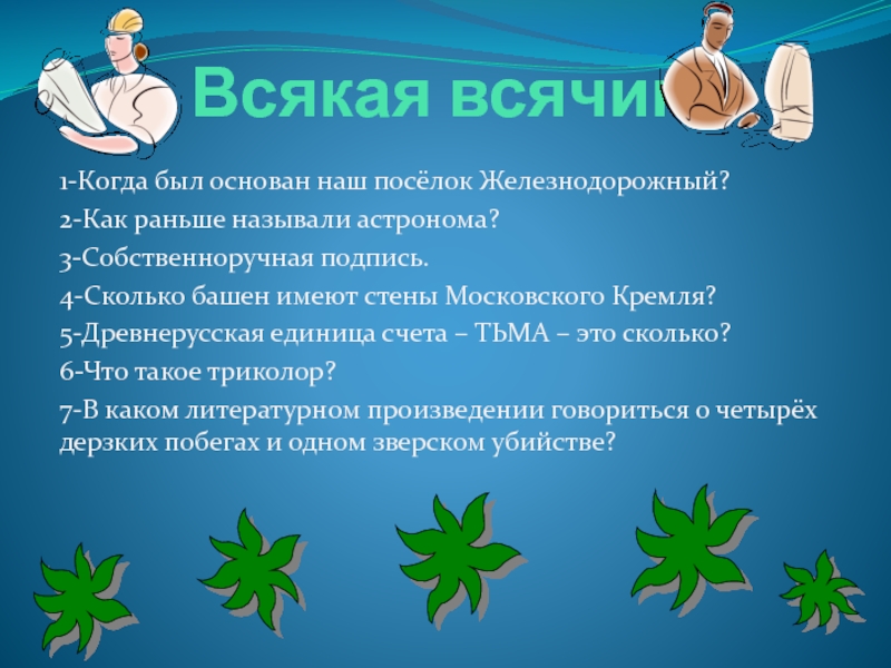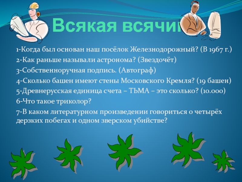 5-Древнерусская единица счета – ТЬМА – это сколько? (10.000)