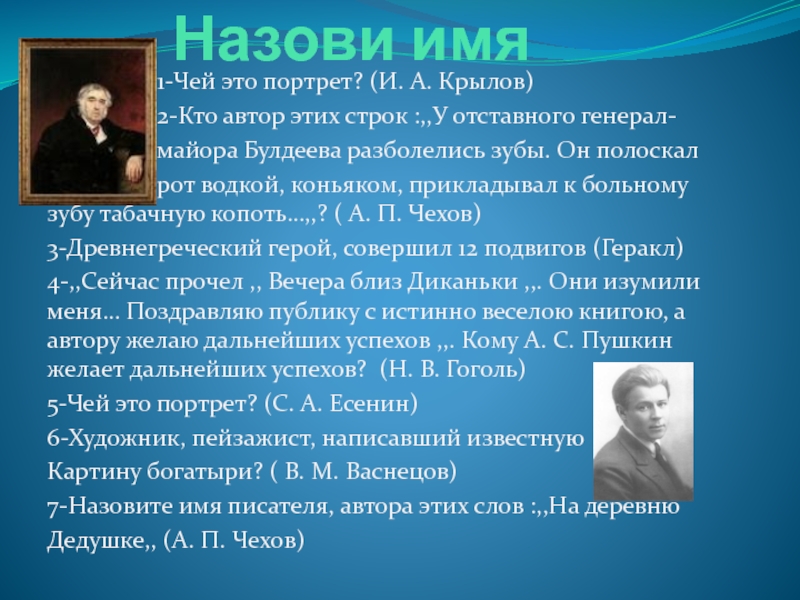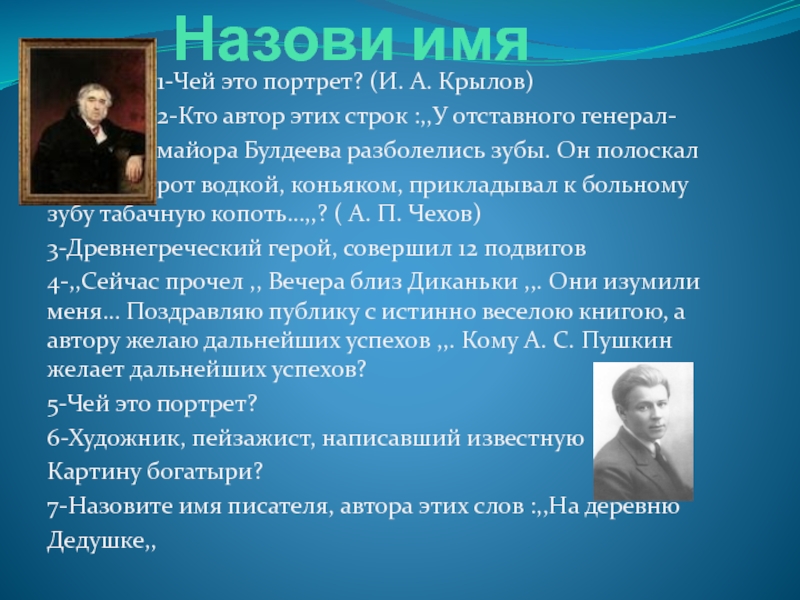 7-Назовите имя писателя, автора этих слов :,,На деревню