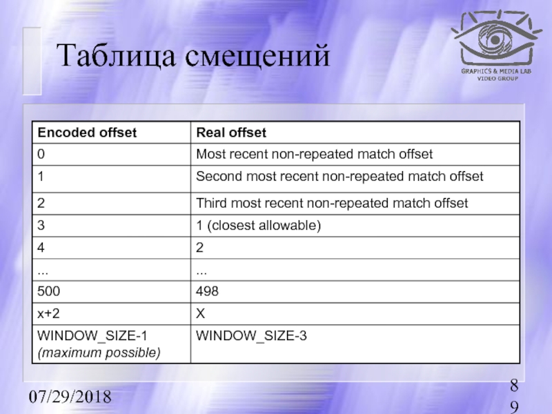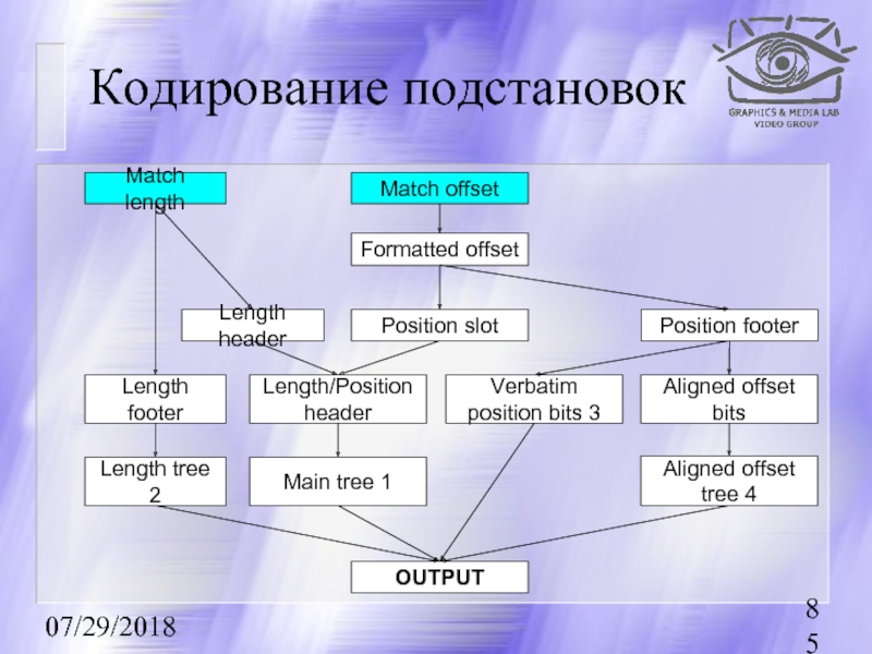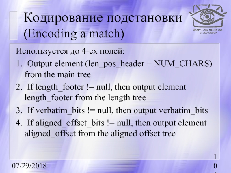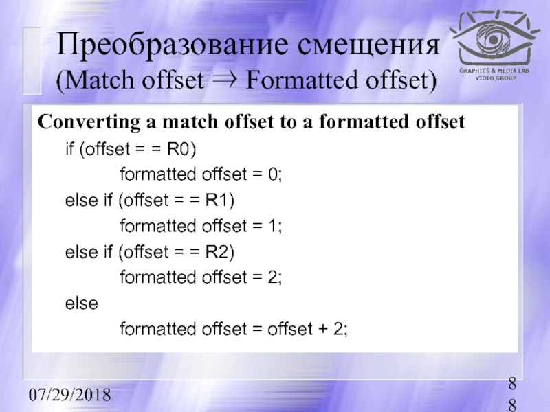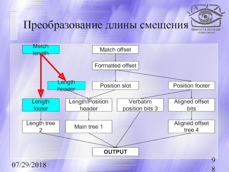 Преобразование длины смещения (Match length ⇒ Length header, Length footer)
