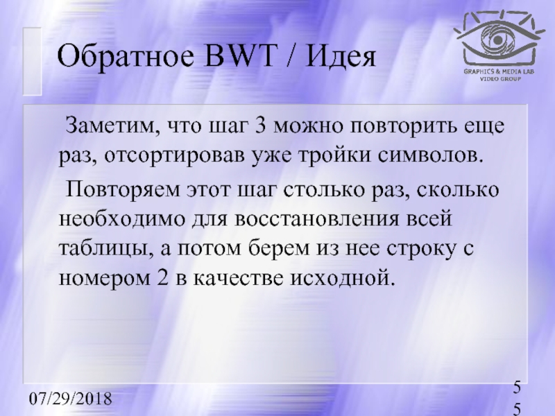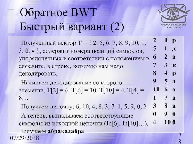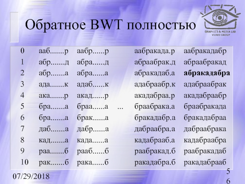(BWT, ST. Используется в основном для текста.)