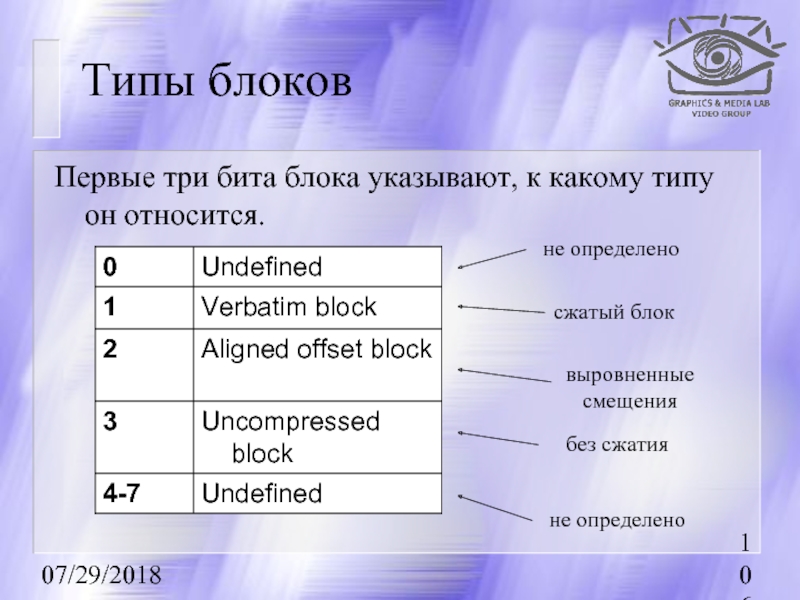 Первые три бита блока указывают, к какому типу он относится.