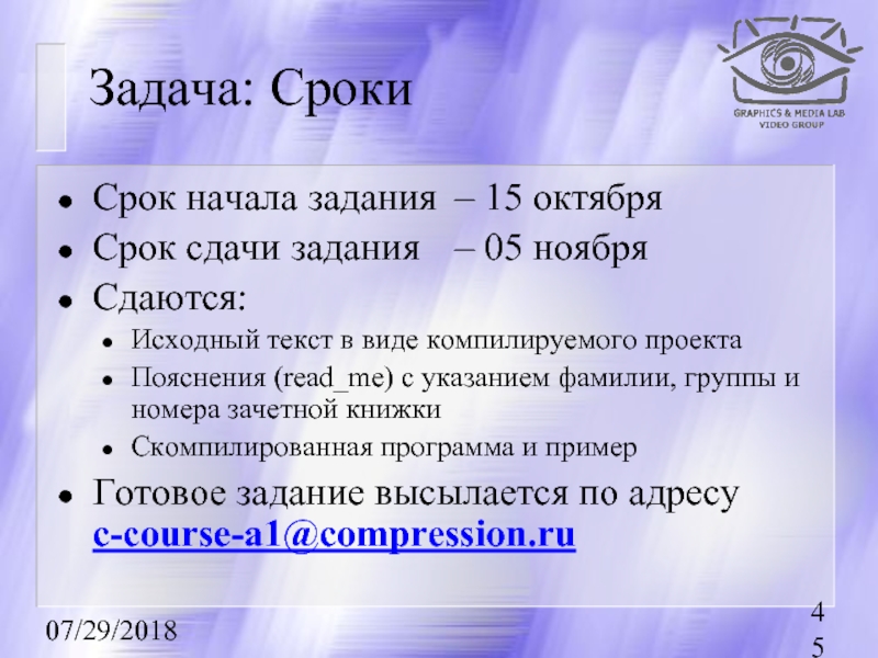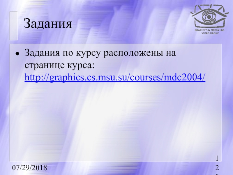Задания по курсу расположены на странице курса: http://graphics.cs.msu.su/courses/mdc2004/