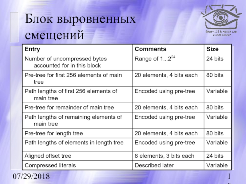 17-19 применяются для дополнительного преобразования Run-Length Encoding.