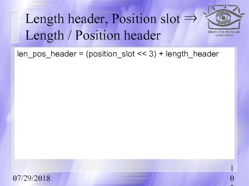 Length header, Position slot ⇒ Length / Position header