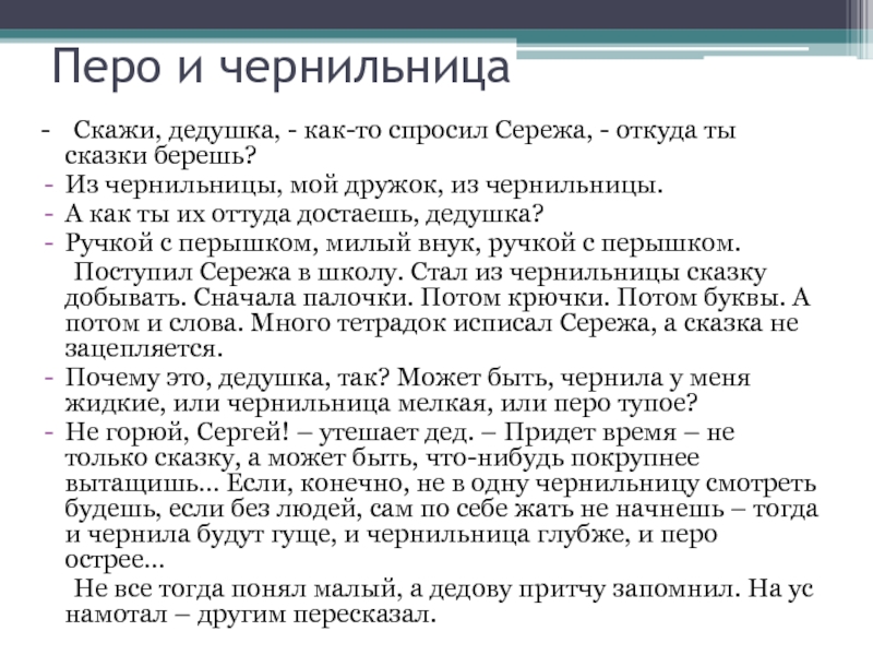 Почему это, дедушка, так? Может быть, чернила у меня жидкие, или чернильница мелкая, или перо тупое?
