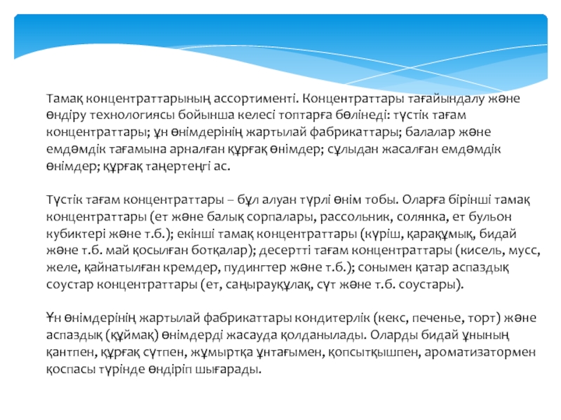 Слайд 2Тағамдық концентраттар — азық түліктің тез әрі оңай тамақ дайындап алуға