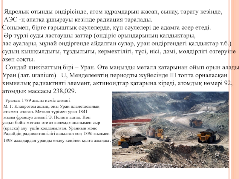 ақпаратты толығымен біліп, уран өндірісін дамыту, қалдығын жою