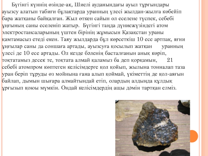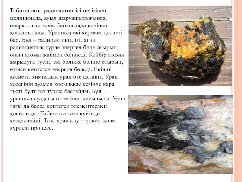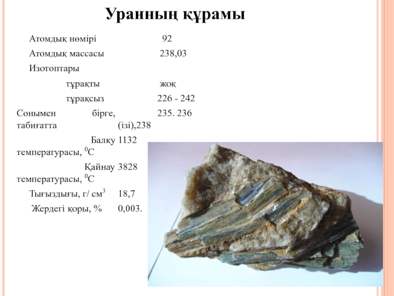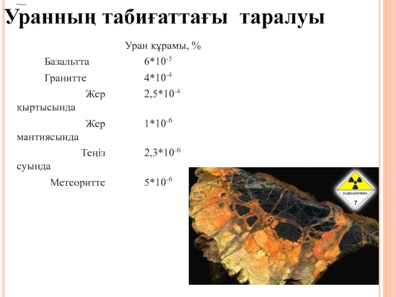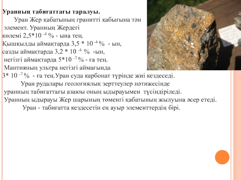 Жобаның обьектісі:  Уран металының өзі, табиғатта таралуы, ғылымда