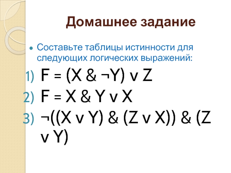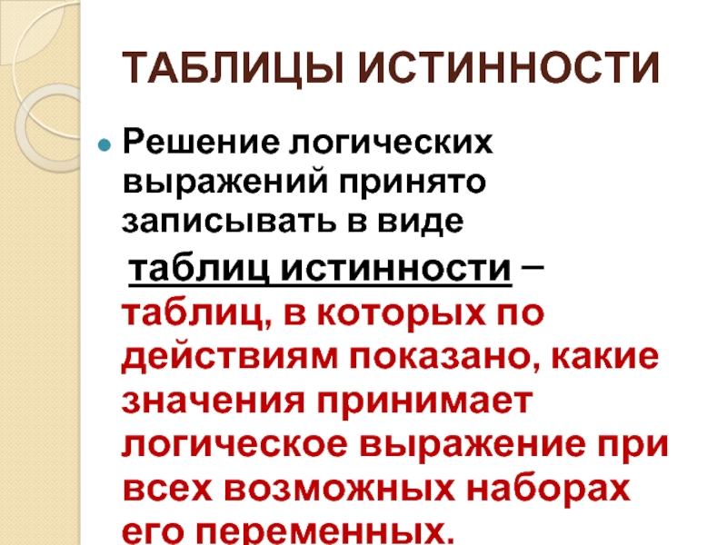 Слайд 3ТАБЛИЦЫ ИСТИННОСТИ