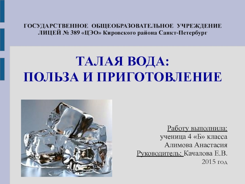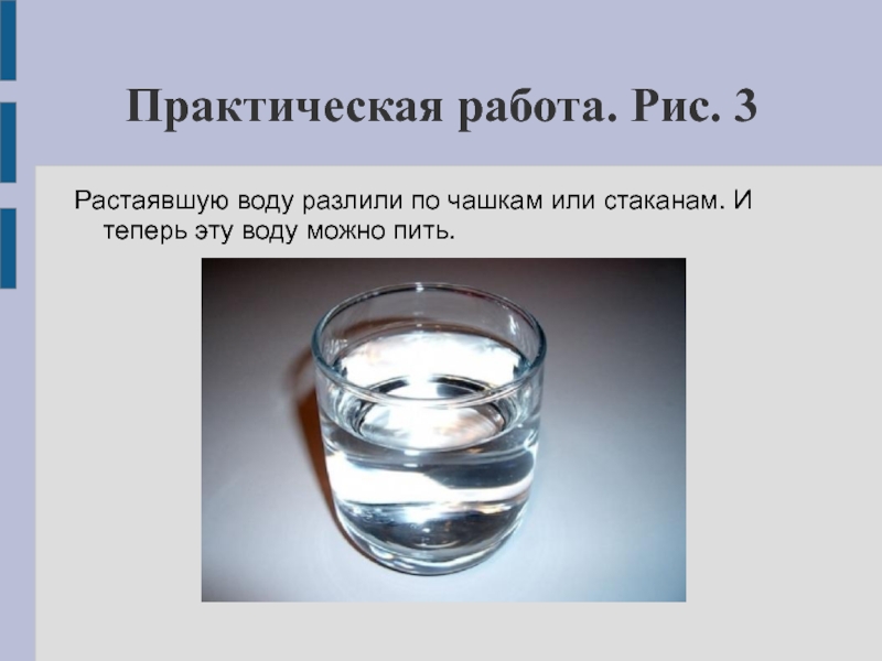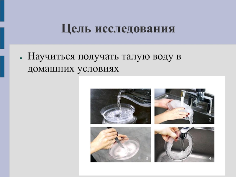 (т. к. свойства талой воды сохраняются 7-10 часов после того, как ее достали из морозильной камеры).
