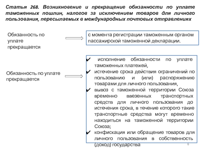 2) зачисление на счет, определенный в соответствии с законодательством государств-членов, таможенных пошлин, налогов, уплаченных получателем товаров для личного пользования.