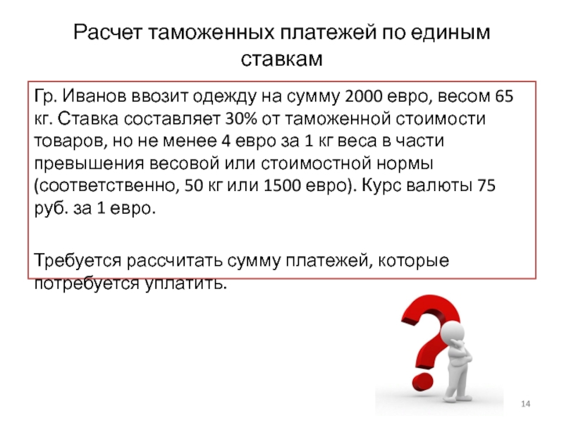 определяется путем применения базы для исчисления таможенных пошлин, налогов и соответствующей единой ставки таможенных пошлин, налогов.
