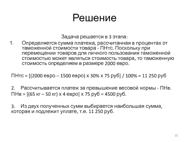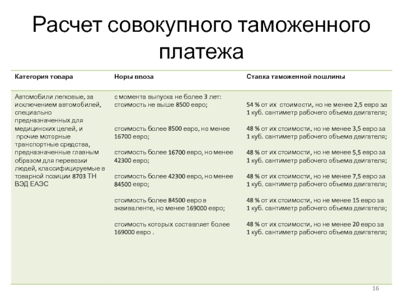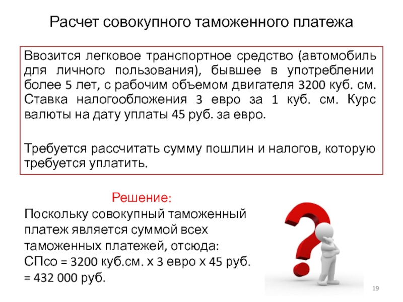 Поскольку совокупный таможенный платеж является суммой всех таможенных платежей, отсюда: