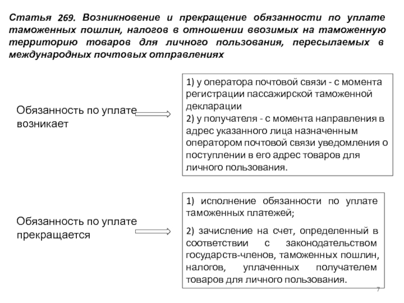 1) у оператора почтовой связи - с момента регистрации пассажирской таможенной декларации