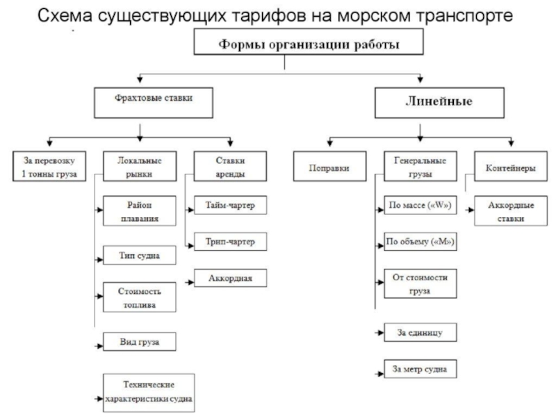 вагон, 1 т груза или 1 контейнер при перевозке груза между данными станциями, сведенные в таблицы, в схемных тарифах (дифференцированных) установлена плата в зависимости от расстояния перевозок.