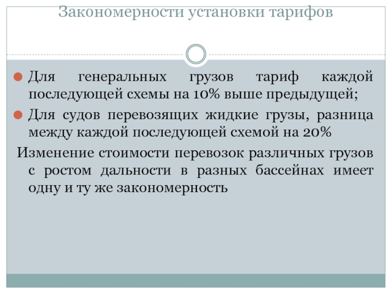 Для генеральных грузов тариф каждой последующей схемы на 10%