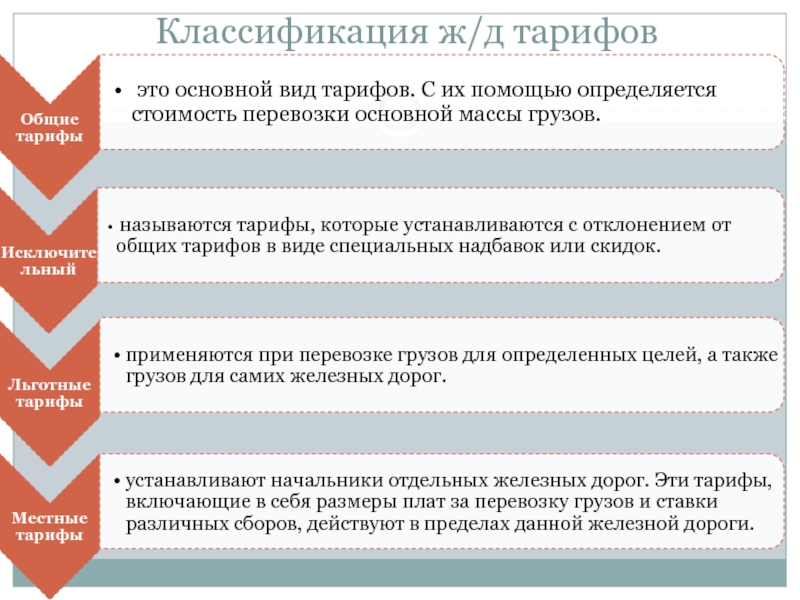 Классные - применяют для перевозки грузов, требующих особых условий для перевозки (золото, ценные бумаги, живые животные, печатная продукция). На практике классные тарифы исчисляют с учетом ценности груза;