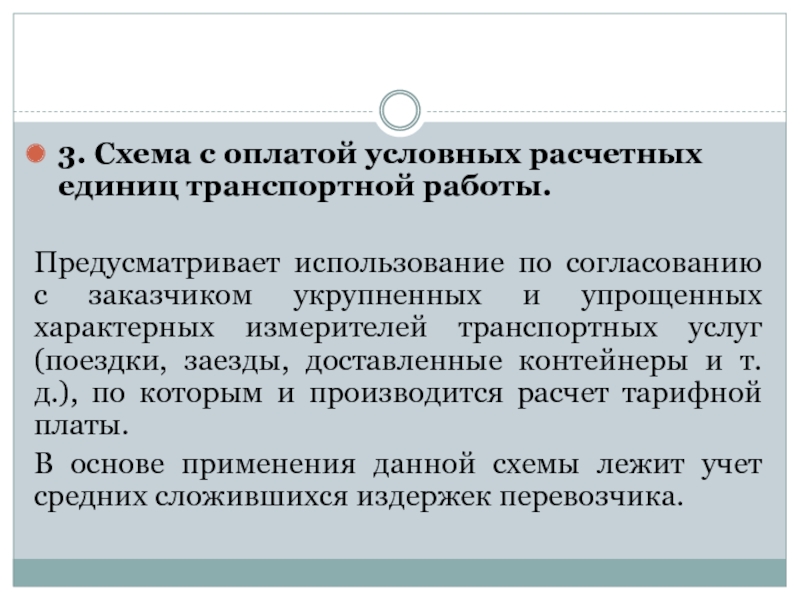 3. Схема с оплатой условных расчетных единиц транспортной работы.