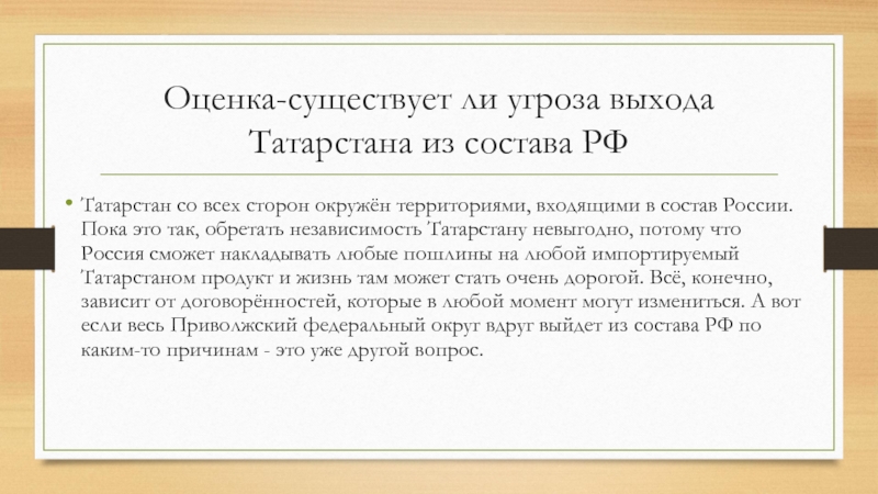 Слайд 7Оценка-существует ли угроза выхода Татарстана из состава РФ