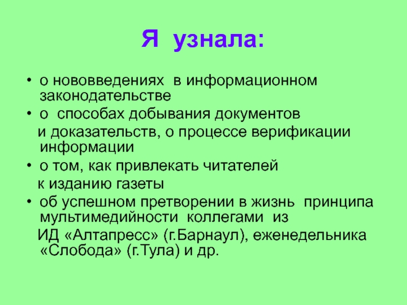 ИД «Алтапресс» (г.Барнаул), еженедельника «Слобода» (г.Тула) и др.